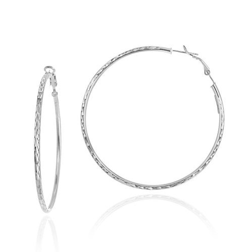 Review : Sterling Silver Tarnish-Free 2.5x60 Diamond-Cut Clutchless Hoop Earrings