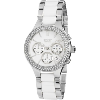 Buy Now! DKNY Chronograph Steel and White Ceramic Ladies Watch NY8181